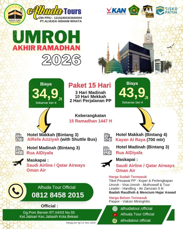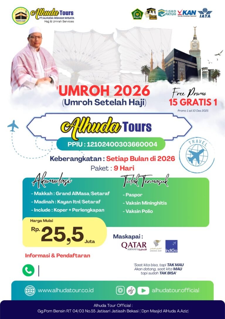 Alhuda Tour Terdaftar resmi di Kementerian Agama RI, menjamin keberangkatan umrah yang pasti.